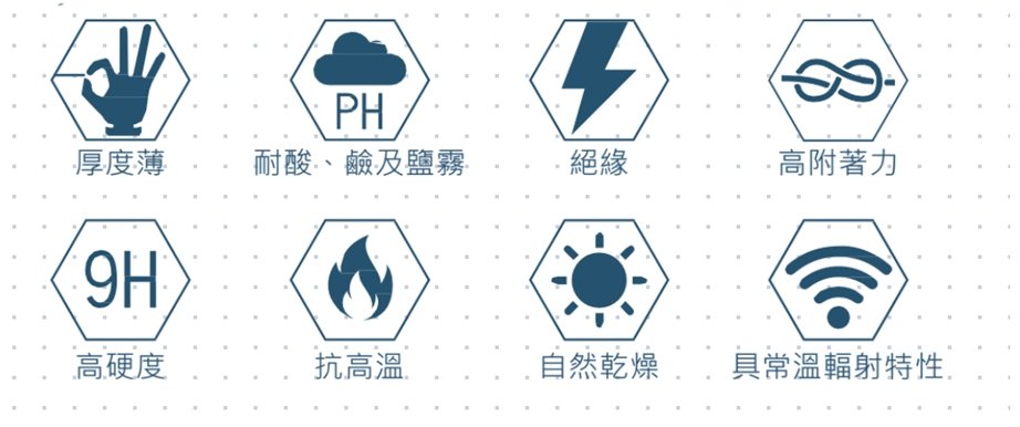 其奈米級塗層厚度可達5–15μm,具備導熱係數高達 15–20 W/m·K,遠優於傳統有機塗料(約 0.2–0.5 W/m·K)。同時具備耐高溫、耐腐蝕、耐化學性特點,可長時間在–40°C 至 1200°C的極端環境中穩定運作。